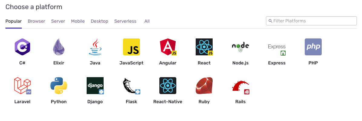 Create an account (or Login) on Sentry