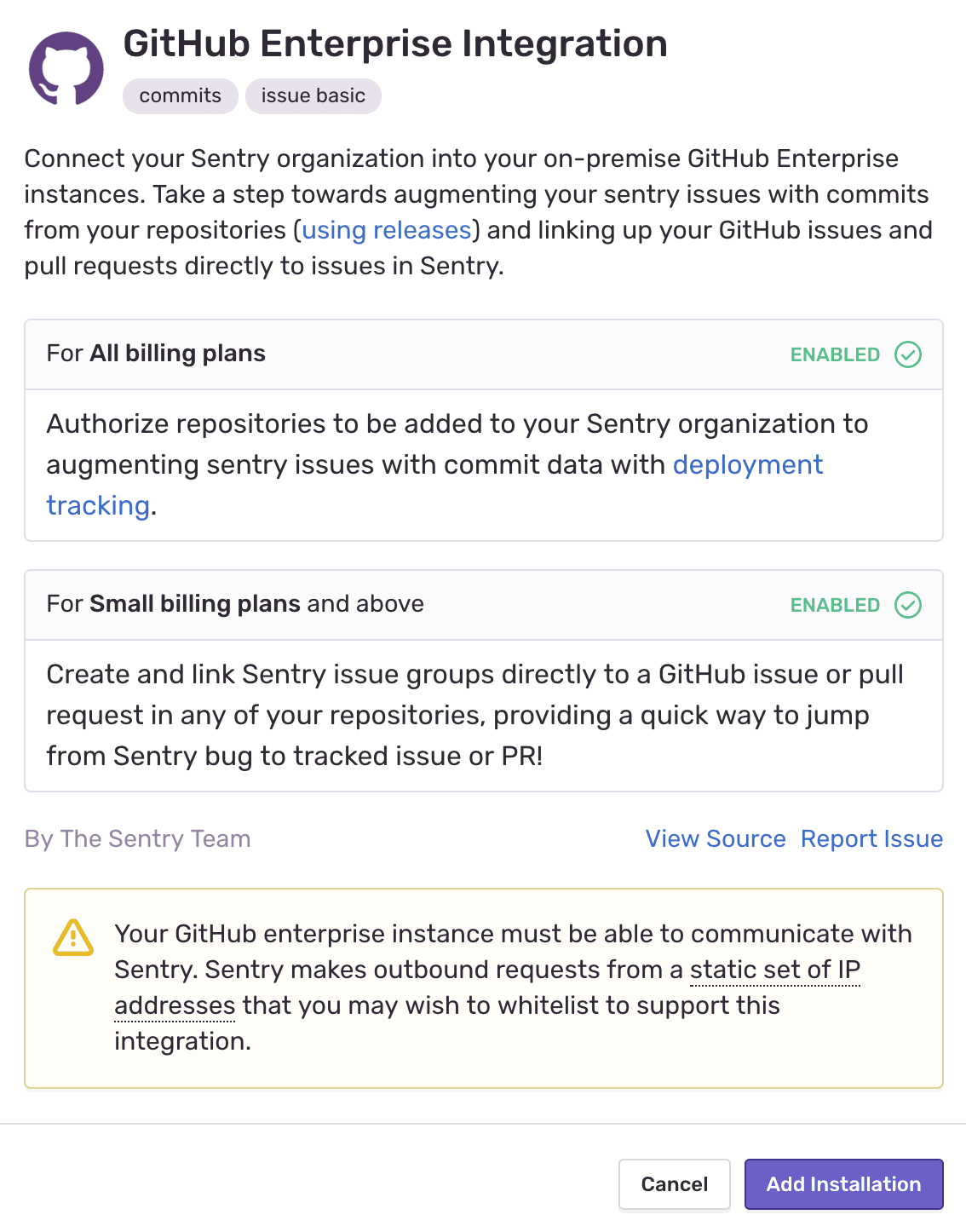 1. Confirm Sentry's IP ranges are allowed for your GitHub Enterprise instance.