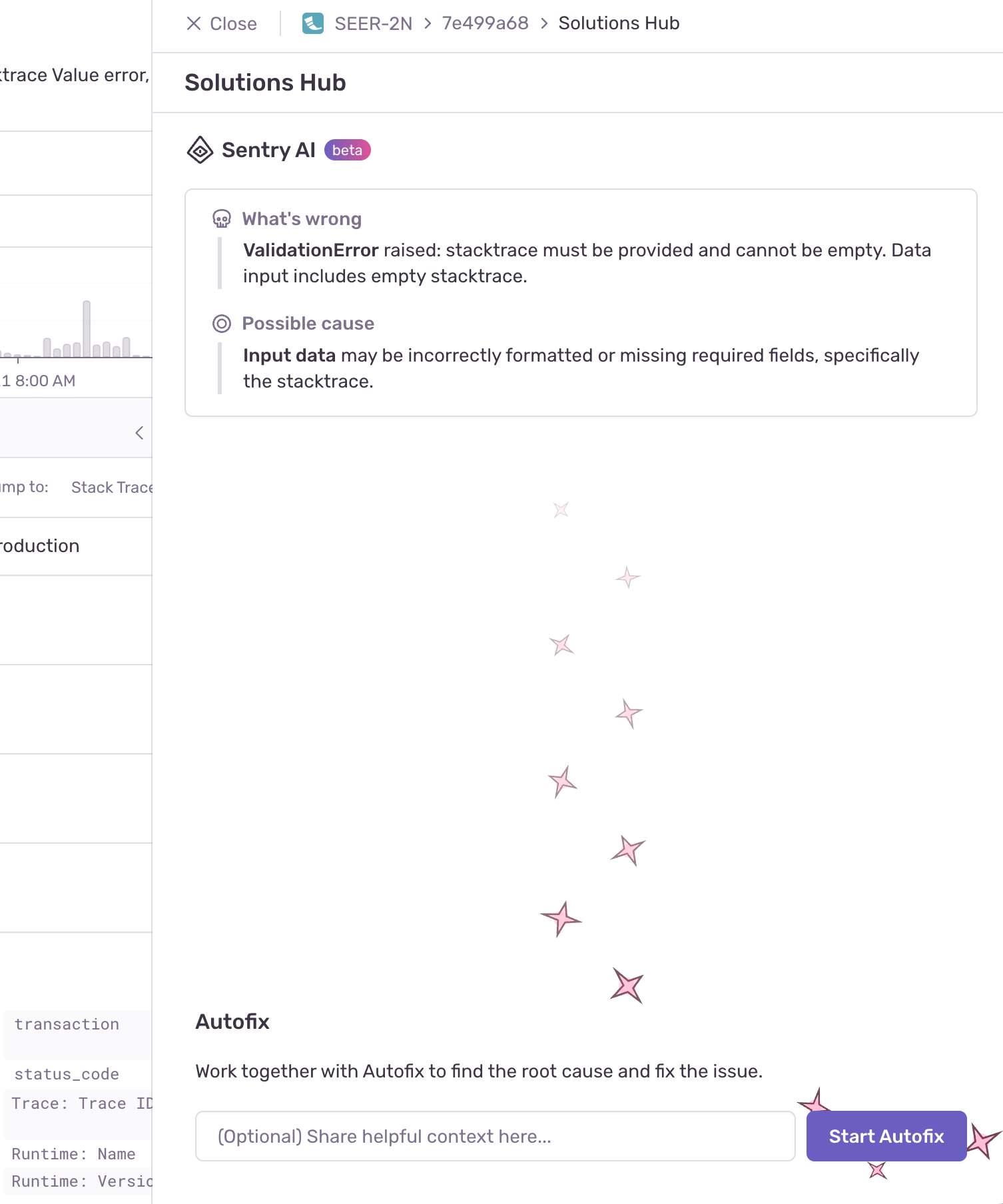 When you start an Autofix run, you'll see the following screen, with an option to share any additional context: